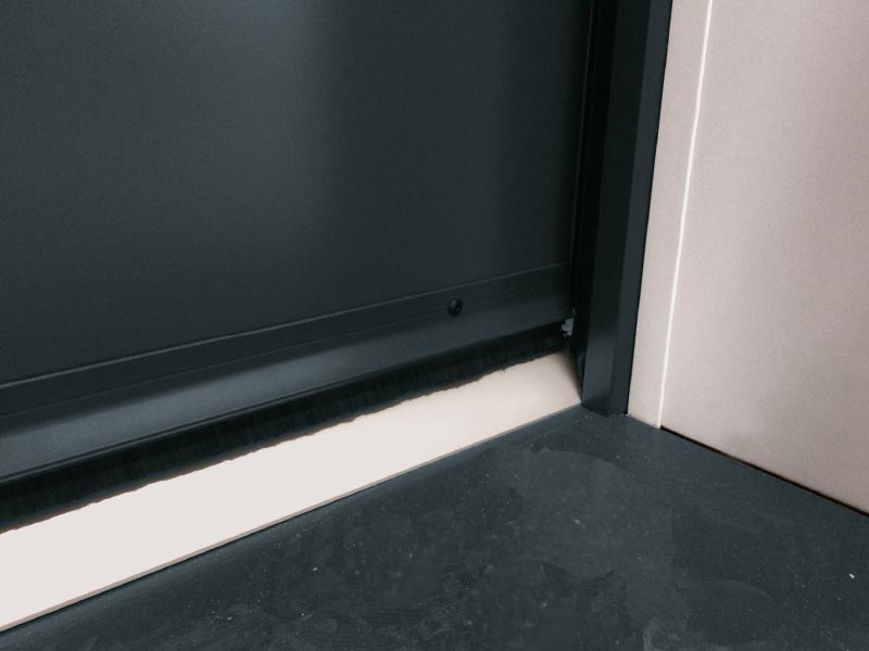 • Joints dissimulés dans le bâti en aluminium laqué de la couleur de la porte