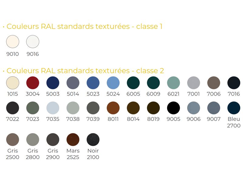 Attention, l’affichage des couleurs sur votre écran n’est pas le rendu réel. N’hésitez pas à demander un nuancier à votre installateur pour faire le choix de la bonne couleur !